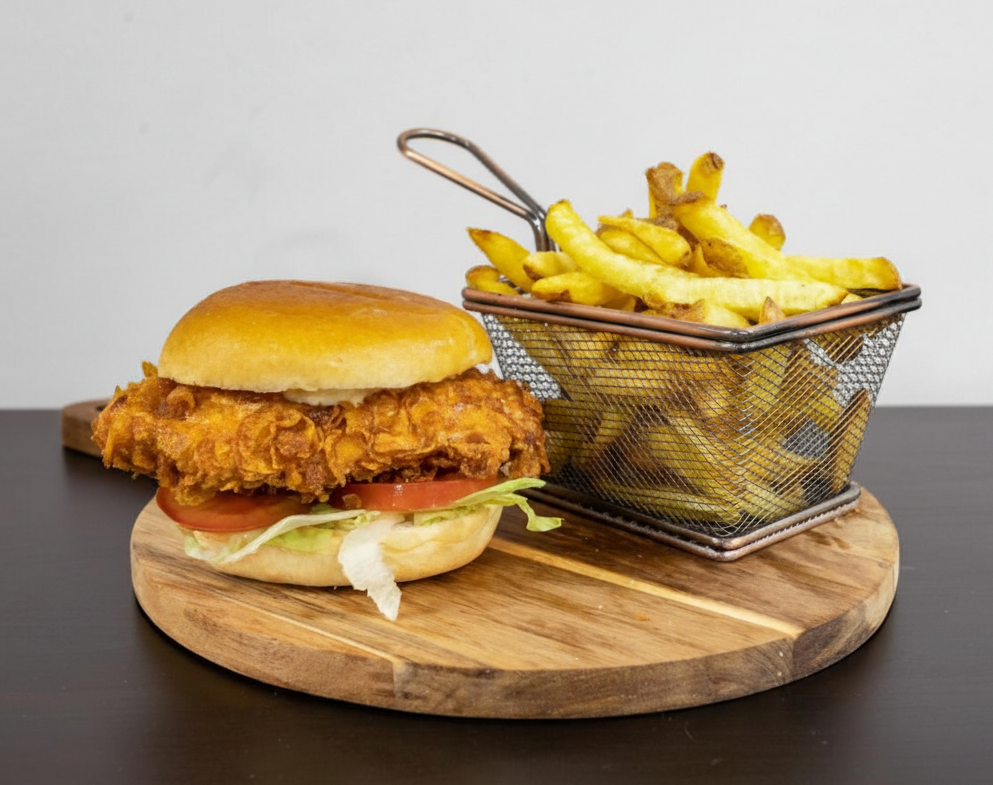 Accueil / Burgers frites / Chicken Burger Chicken Burger17,00 € Poulet pané, garniture et 2 sauces au choix. Servi avec frites et 2 sauces pour frites au choix. Catégorie : Burgers frites Produits similaires Smash Burger 17,00 € Boutique fermée Burger Classique 17,00 € Boutique fermée Triple Smash Burger 25,00 € Boutique fermée Double Smash Burger 21,00 € Boutique fermée