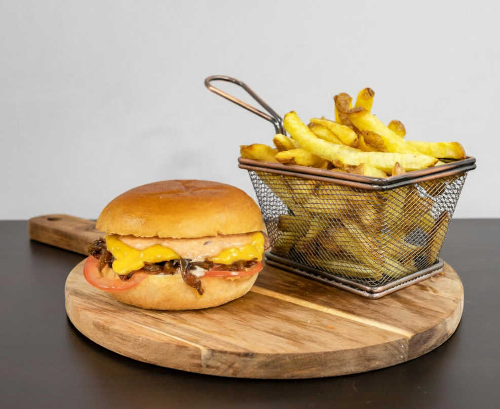 Accueil / Burgers frites / Smash Burger Smash Burger17,00 € 1 steak smasher, 1 fromage, garniture et 2 sauces au choix. Servi avec frites et 2 sauces pour frites au choix. Catégorie : Burgers frites Produits similaires Triple Smash Burger 25,00 € Boutique fermée Burger Classique 17,00 € Boutique fermée Double Smash Burger 21,00 € Boutique fermée Chicken Burger 17,00 € Boutique fermée